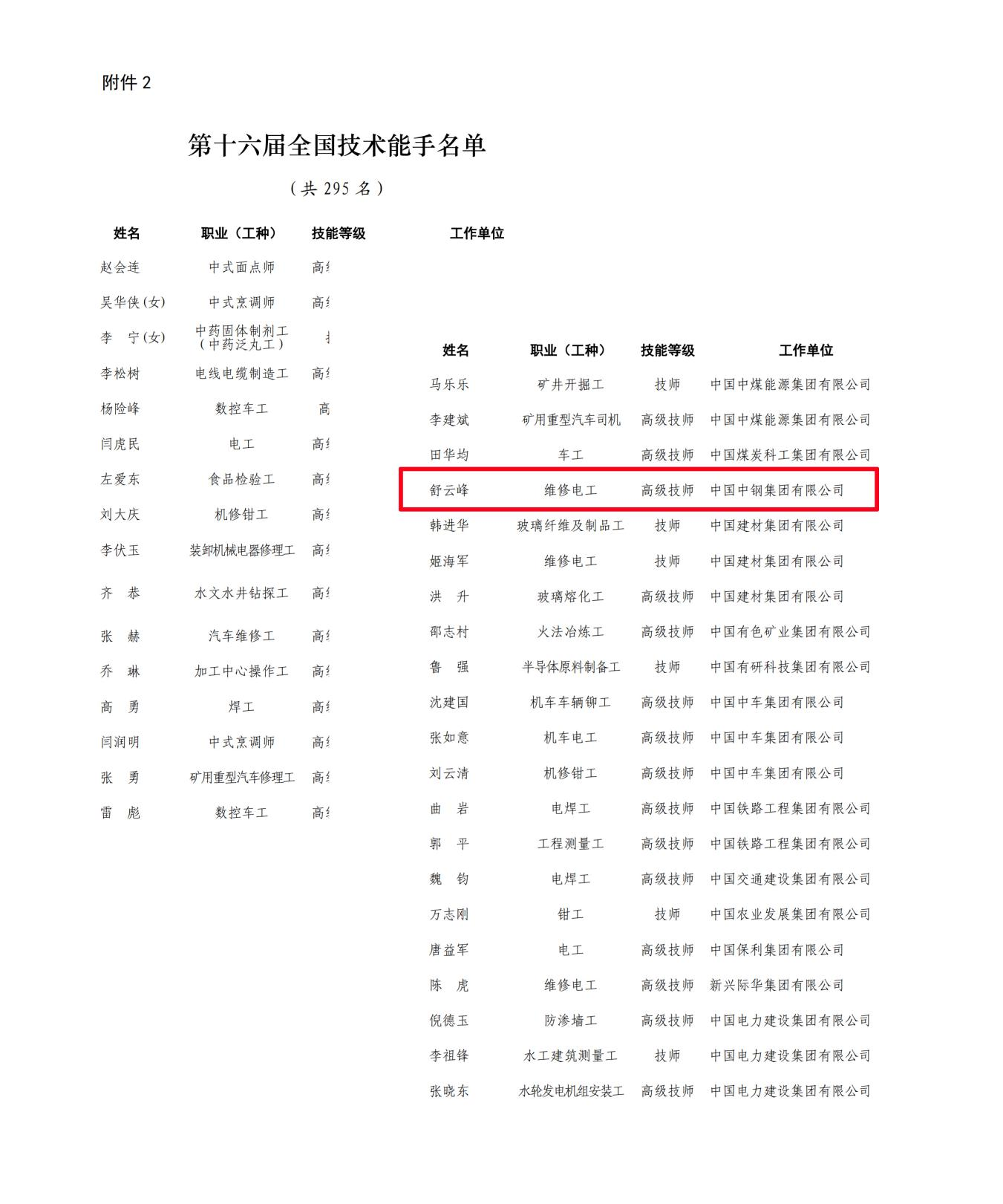 中鋼天源1人榮獲全-國技術(shù)能手榮譽(yù)稱號(hào)