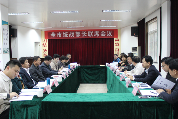 市委常委、統(tǒng)戰(zhàn)部部長(zhǎng)毛長(zhǎng)江在最后的講話中強(qiáng)調(diào),全市各級(jí)統(tǒng)戰(zhàn)部門要進(jìn)一步加強(qiáng)對(duì)十八屆四中全會(huì)等中央會(huì)議和文件的學(xué)習(xí),深刻領(lǐng)會(huì)其精神內(nèi)涵,并著眼統(tǒng)戰(zhàn)工作實(shí)際抓好貫徹落實(shí),具體做好2016年市級(jí)民主黨派組織換屆各項(xiàng)工作;進(jìn)一步完善政府部門同民主黨派、工商聯(lián)對(duì)口聯(lián)系工作制度,規(guī)范特約(邀)人員統(tǒng)一推薦和聘任程序;切實(shí)做好經(jīng)濟(jì)領(lǐng)域統(tǒng)戰(zhàn)工作,引導(dǎo)非公經(jīng)濟(jì)人士增強(qiáng)定力、激發(fā)活力、釋放助力、提升能力;不斷完善工作機(jī)制、創(chuàng)新工作載體,扎實(shí)做好全市民族宗教工作;統(tǒng)籌做好港澳同胞與臺(tái)灣同胞、海外僑胞服務(wù)工作,積極為全市經(jīng)濟(jì)社會(huì)發(fā)展集聚智慧,貢獻(xiàn)力量。