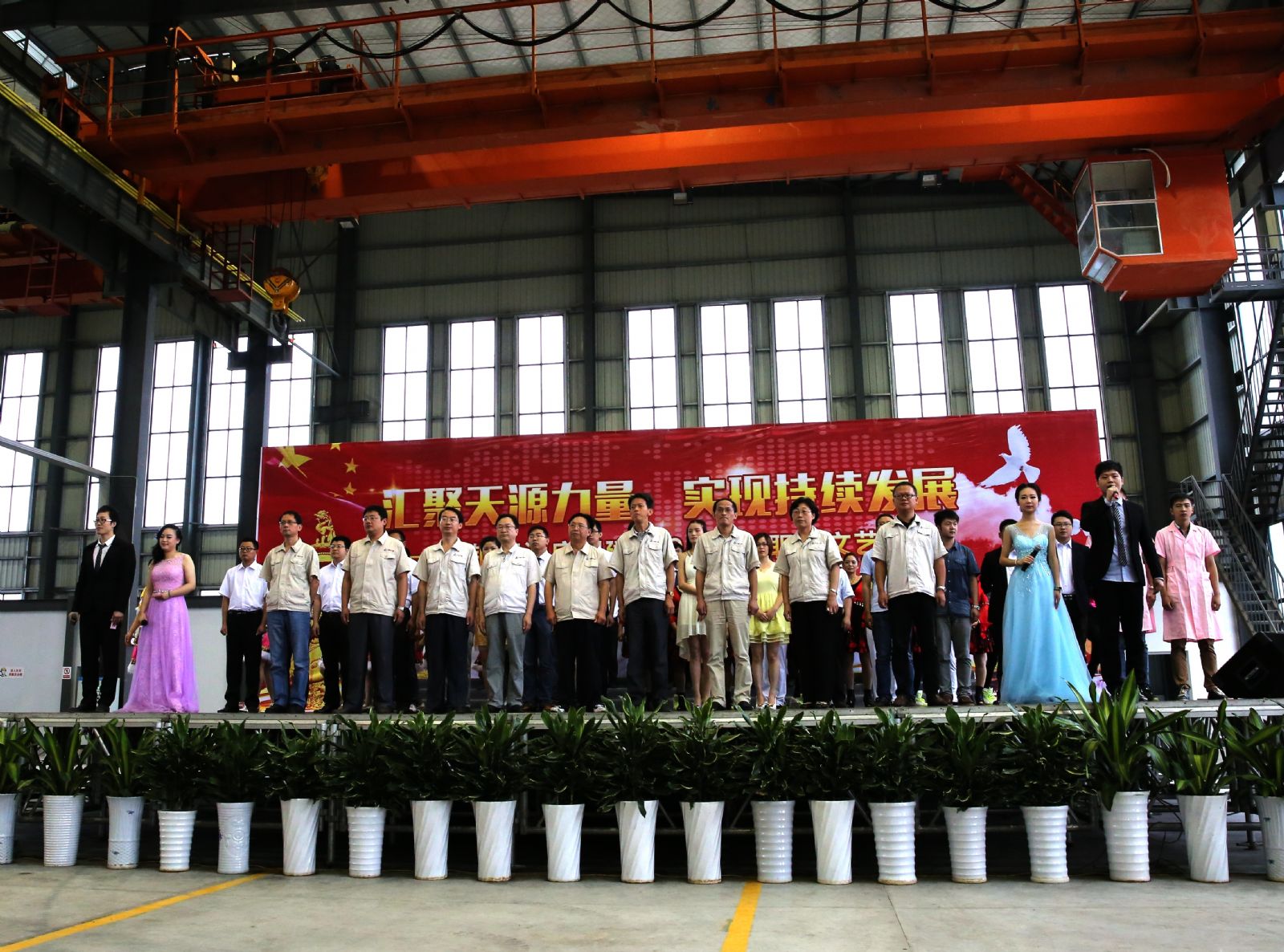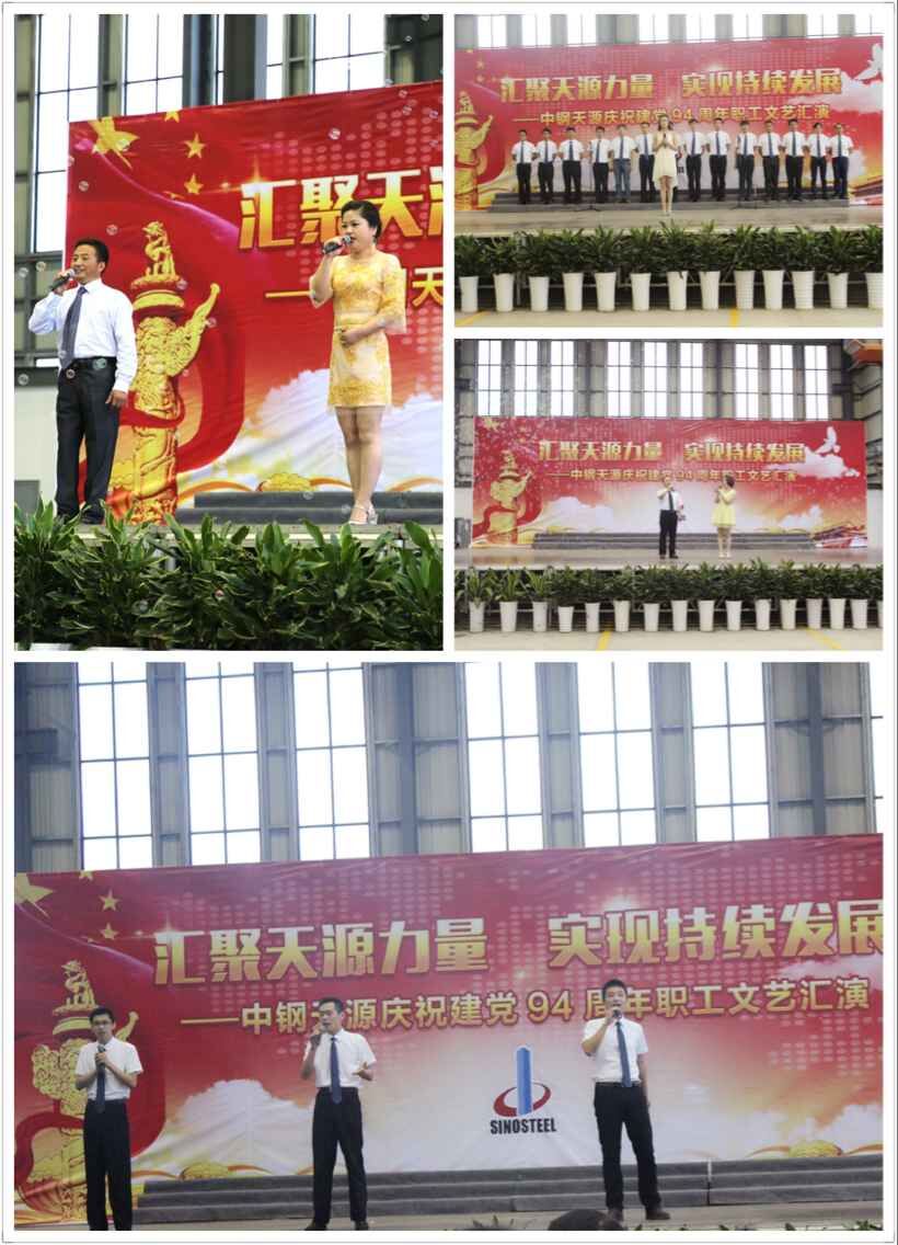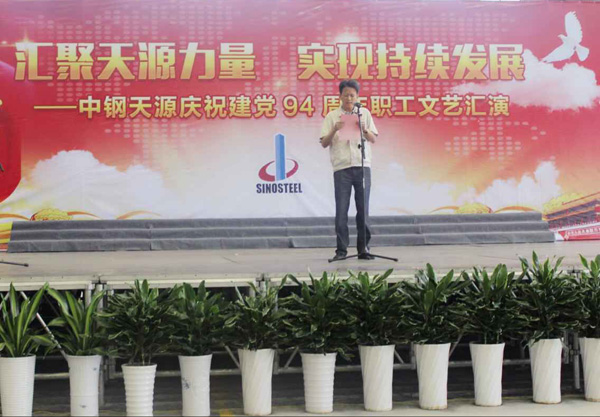 為慶祝建黨94周年,充分展現(xiàn)公司成立以來的輝煌成就、廣大干部員工干事創(chuàng)業(yè)的精神風貌,弘揚正能量,6月27日上午,由中鋼天源黨委主辦,黨群工作部、工會、團委協(xié)辦的“匯聚天源力量、實現(xiàn)持續(xù)發(fā)展——中鋼天源慶祝建黨94周年職工文藝匯演”在公司新區(qū)隆重舉行。公司領導班子及高管,各單位、各部門助理以上中層干部,退休老同志代表,在公司的人大代表、政協(xié)委員,公司第二屆職代會、工代會代表,公司成立以來在各條戰(zhàn)線上獲得榮譽表彰的先進模范人物代表共200余人觀看了演出。