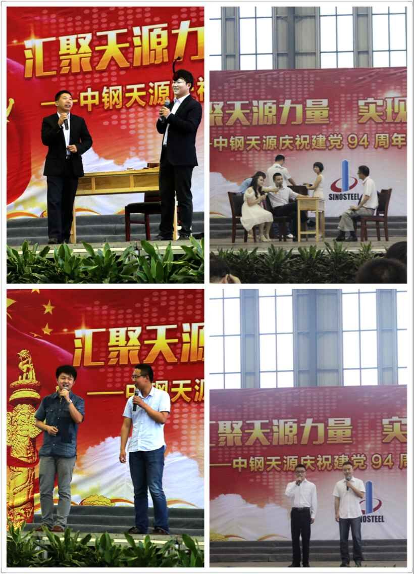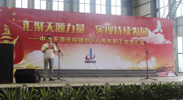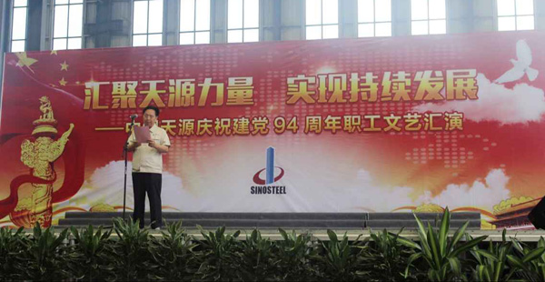 為慶祝建黨94周年,充分展現(xiàn)公司成立以來(lái)的輝煌成就、廣大干部員工干事創(chuàng)業(yè)的精神風(fēng)貌,弘揚(yáng)正能量,6月27日上午,由中鋼天源黨委主辦,黨群工作部、工會(huì)、團(tuán)委協(xié)辦的“匯聚天源力量、實(shí)現(xiàn)持續(xù)發(fā)展——中鋼天源慶祝建黨94周年職工文藝匯演”在公司新區(qū)隆重舉行。公司領(lǐng)導(dǎo)班子及高管,各單位、各部門助理以上中層干部,退休老同志代表,在公司的人大代表、政協(xié)委員,公司第二屆職代會(huì)、工代會(huì)代表,公司成立以來(lái)在各條戰(zhàn)線上獲得榮譽(yù)表彰的先進(jìn)模范人物代表共200余人觀看了演出。