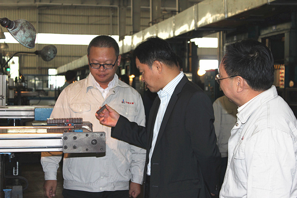 徐總一行現(xiàn)場(chǎng)考察了中鋼天源通力公司的永磁鐵氧體生產(chǎn)車間,參觀了公司研發(fā)中心和重點(diǎn)實(shí)驗(yàn)室,并不時(shí)詢問(wèn)公司的生產(chǎn)情況,聽取了公司董事長(zhǎng)、黨委書記洪石笙關(guān)于中鋼天源經(jīng)營(yíng)工作情況的匯報(bào)。