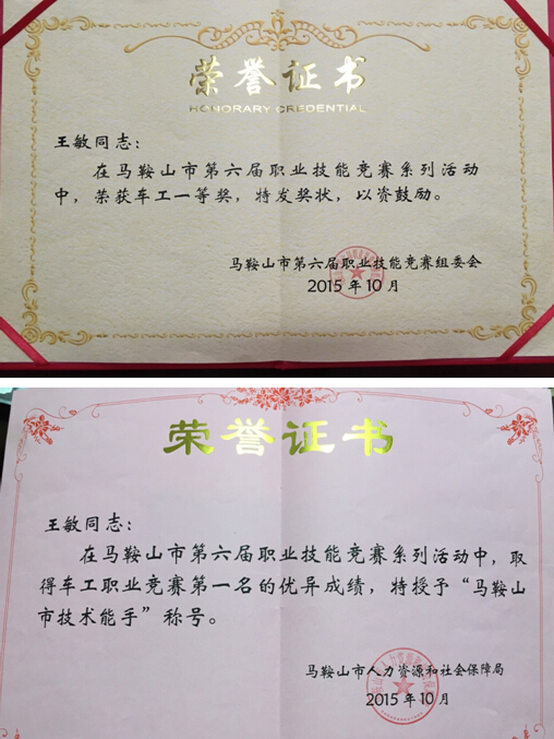 近日,從馬鞍山市人力資源和社會保障局傳來喜訊,中鋼天源機械廠金加工班組王敏同志在市第六屆職業(yè)技能競賽系列活動中取得車工職業(yè)競賽第一名的優(yōu)異成績,獲車工一等獎,并被授予“馬鞍山市技術能手”稱號。