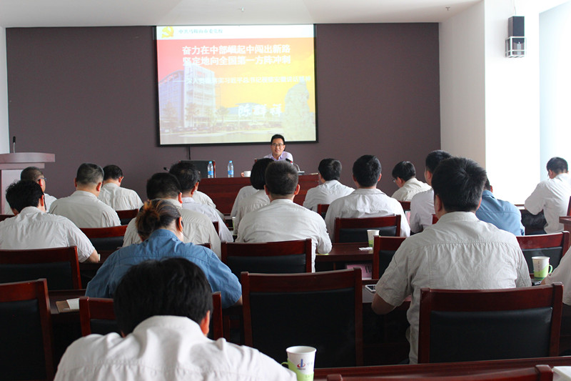 為深入學(xué)習(xí)貫徹習(xí)近平總書(shū)記視察安徽重要講話精神、推動(dòng)“兩學(xué)一做”學(xué)習(xí)教育在基層黨員干部中深入開(kāi)展,中鋼天源邀請(qǐng)馬鞍山市委黨校管理教研室副主任、公共管理副教授陳群祥,于6月21日下午在公司第一培訓(xùn)教室召開(kāi)市委講師團(tuán)專題黨課進(jìn)基層巡講報(bào)告會(huì)。公司黨委委員、紀(jì)委委員、各部門(mén)、各單位負(fù)責(zé)人、各黨支部書(shū)記、支部委員及部分黨員共50余人參加了會(huì)議。會(huì)議由公司黨委副書(shū)記、紀(jì)委書(shū)記亞海斌主持。