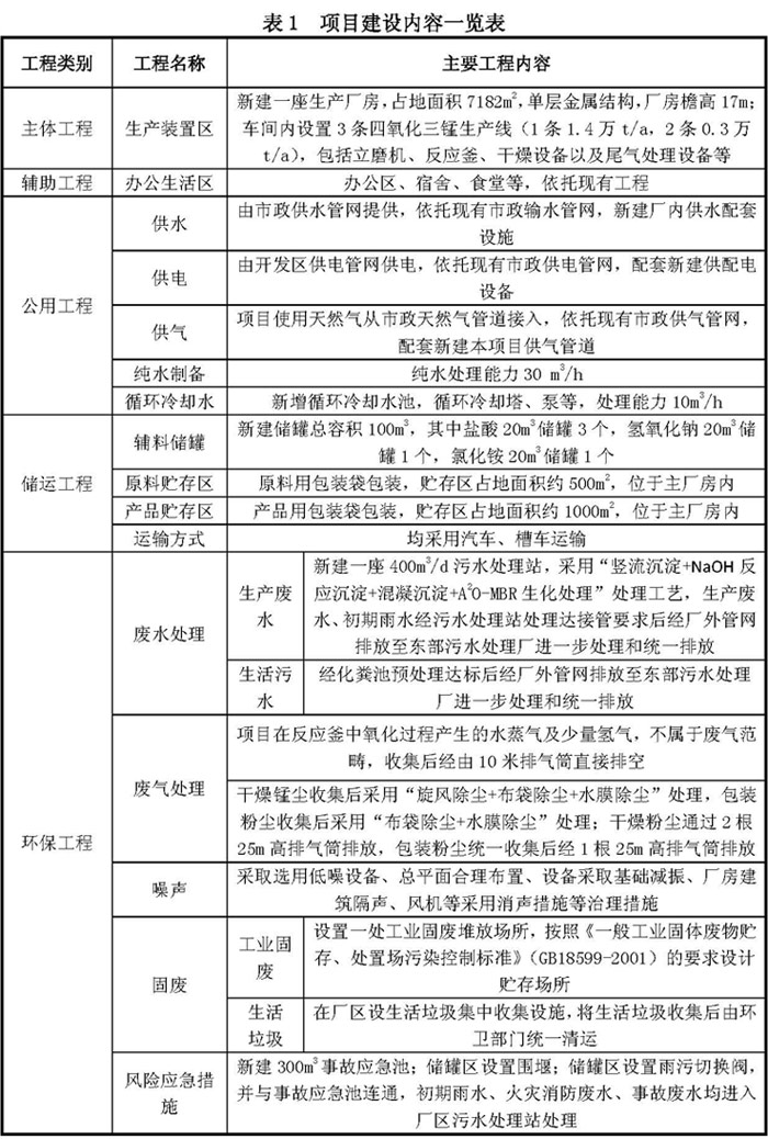 項目主要由主體工程、公輔工程和環(huán)保工程組成,具體工程內(nèi)容見表1